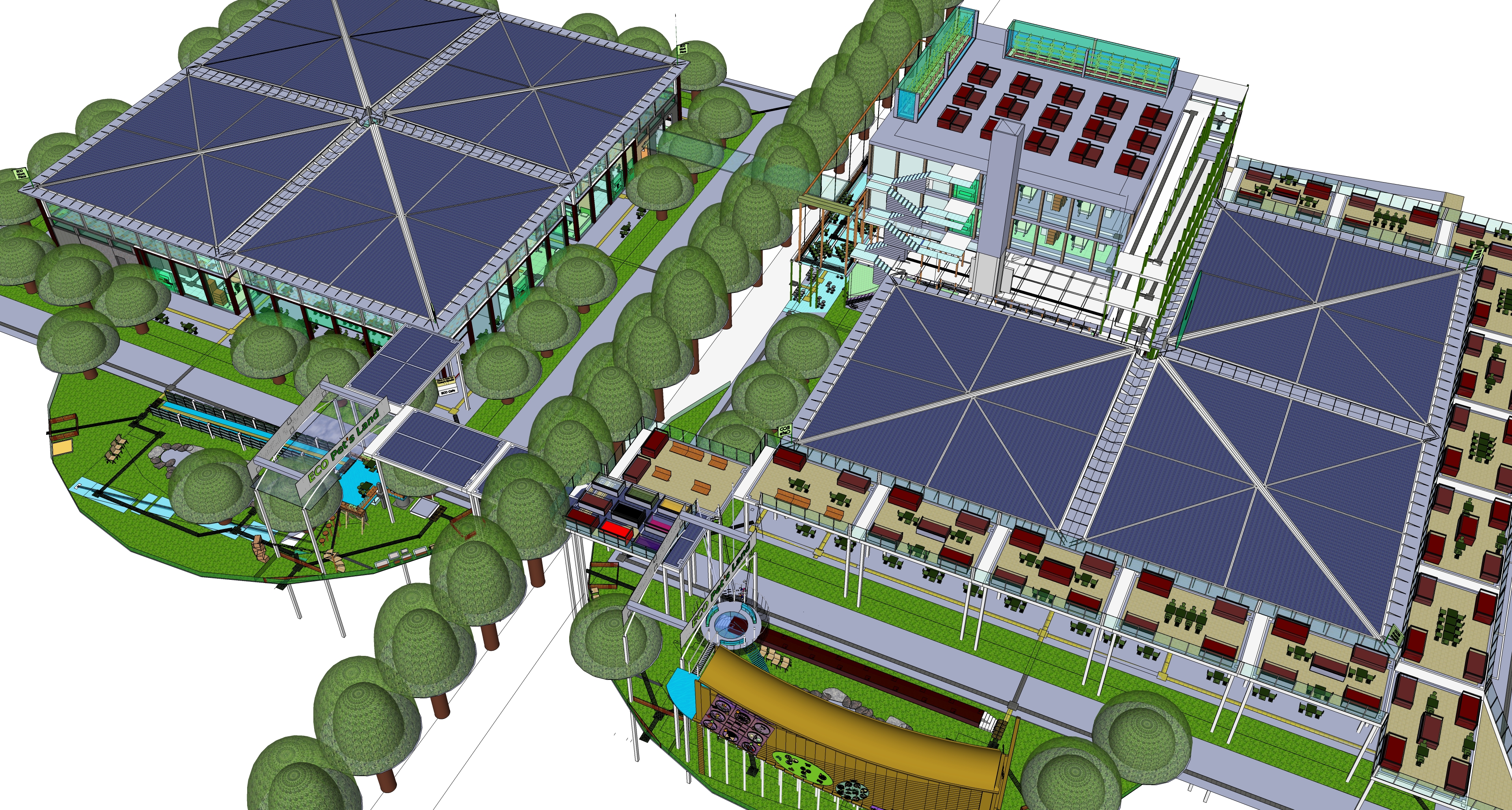 This elderly care home centre was built on 2 plots of land (each with an area a little bit larger than 60m x 60m) with a 7m wide road in between.